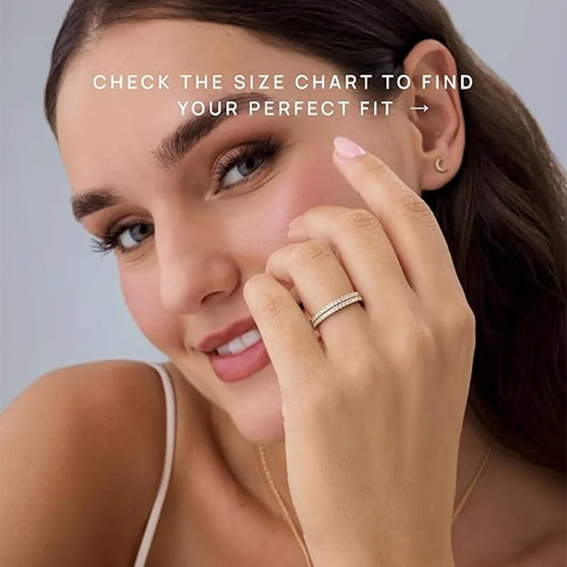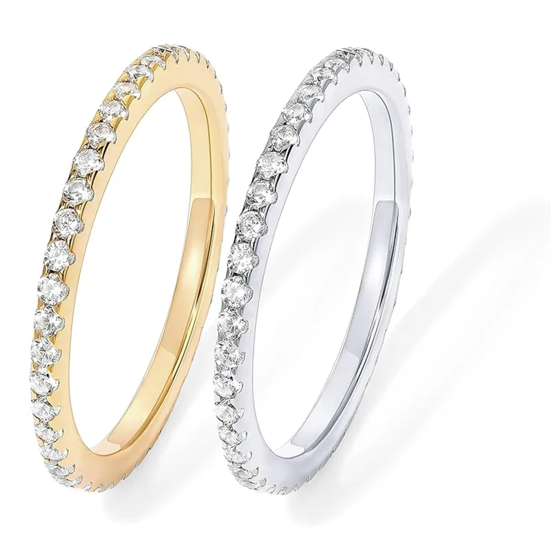Kohokohdat: Tämä 1,8 mm ohut naisten kihlasormus voidaan yhdistää kihlasormuksiin, erikoistarvikkeisiin tai kuntosormuksiin, jolloin muodostuu saumaton ja muodikas yhdistelmä. Voit kerrostaa naisten timanttisormuksia suosikkikultakorusi kanssa luodaksesi rohkean ja huomiota herättävän vaikutelman, tai käyttää sitä yksinään esitelläksesi hienovaraista eleganssia.