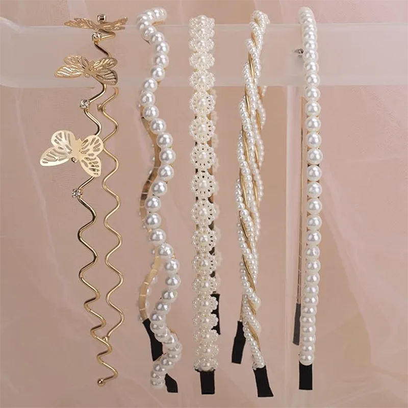 Tämä joustava helmihelmimetallipäänauha on saatavana 10 eri tyylillä, kuten helmi-, metalli-, rusetti- ja kiiltävä kristallihelminauha. Jokainen tyyli vastaa erilaisiin tarpeisiin ja sopii päivittäiseen käyttöön.