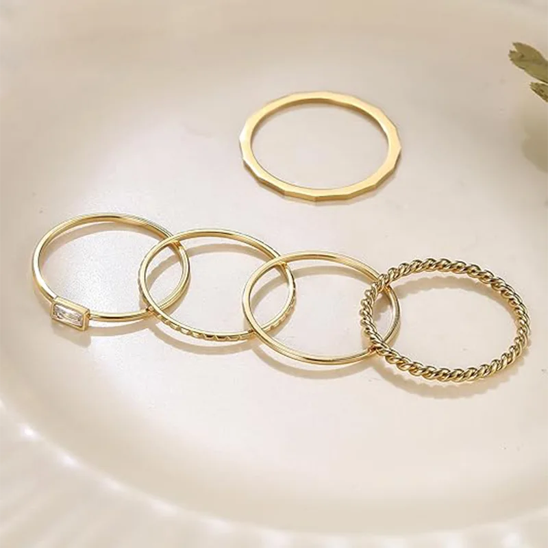 Yksinkertainen pinottava naisten sormus - Näytä tyylisi - Tämä kultainen ja hopeinen sormussetti sisältää viisi erittäin ohutta ja hienoa sormusta, joissa on erilaisia tyylejä ja yksinkertainen muotoilu. Yksin käytettynä ne voivat luoda tyylikkään ja yksinkertaisen ulkonäön, tai niitä käytetään yhdessä näyttämään rohkeaa tyyliä. Täydellinen pinoamiseen, sekoittamiseen ja sovittamiseen sekä muotoiluvaihtoehtoihin!