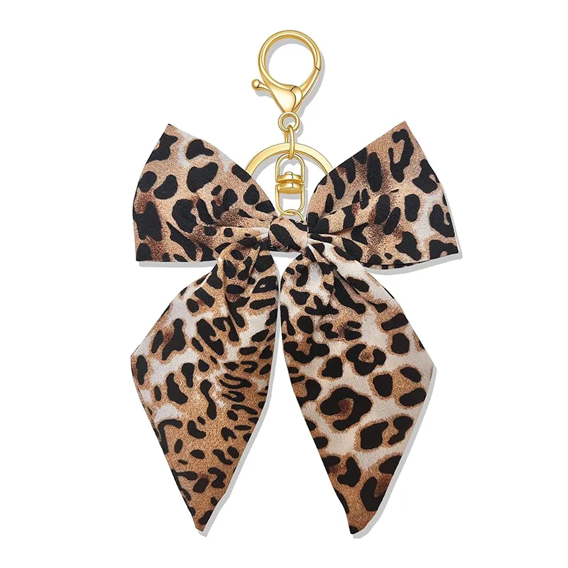 Avainten yhteensopivuus: Leopard Print Bow Bag Charmia käytetään avaimenperänä ja se ripustetaan auton avaimiin ja kodin avaimiin, mikä tekee yksitoikkoisesta avaimenperästä muodikkaan ja näkyvämmän avaimia etsittäessä.