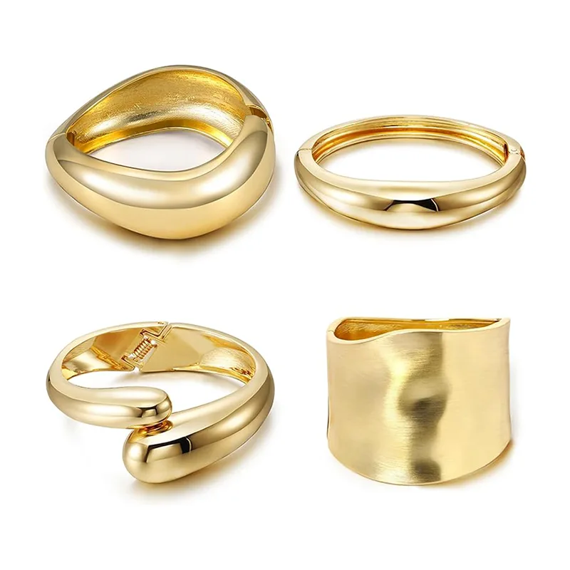 Naisten päivittäinen metalliseosrannekoru on saatavana neljänä yksinkertaisena ja tukevana tyylinä: muodikas kultainen pisaran muotoinen rannekoru, leveä rannekoru, luja rannekoru ja kultainen epäsäännöllinen rannekoru ovat kaikki saatavilla, ja ne vastaavat täysin erilaisia tarpeitasi.