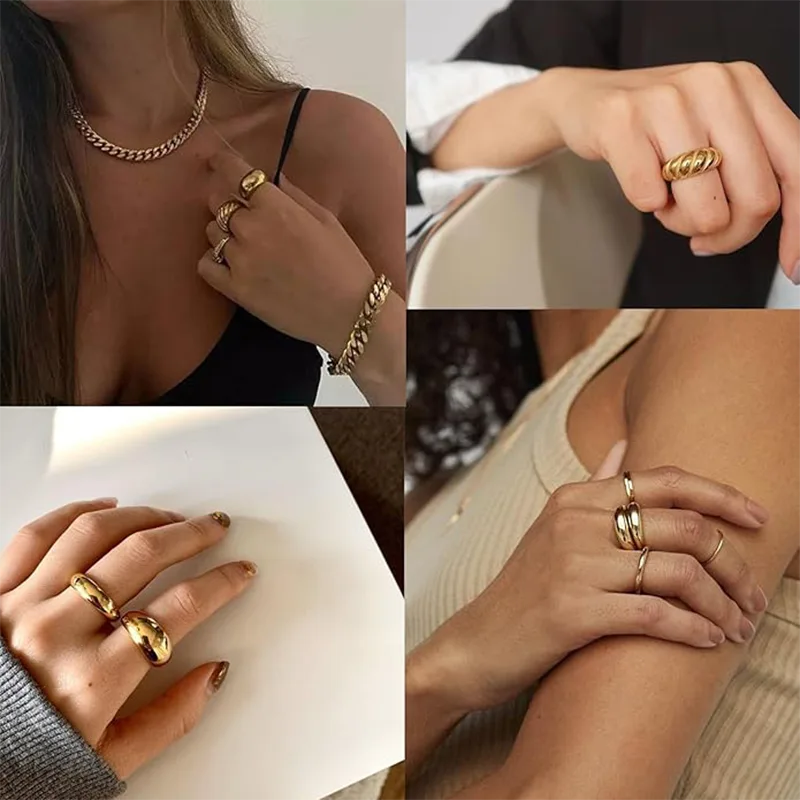 Kultasormussetti, Nämä naisten todelliset kullatut muotisormukset ovat eri tyylejä, mukaan lukien sydämenmuotoiset, sinetin muotoiset, neliön muotoiset, putkimaiset, paksun muotoiset ja kierretyt. Niitä on runsaasti vastaamaan erilaisiin pukeutumistarpeisiisi ja luomaan sinulle parhaan lookin!